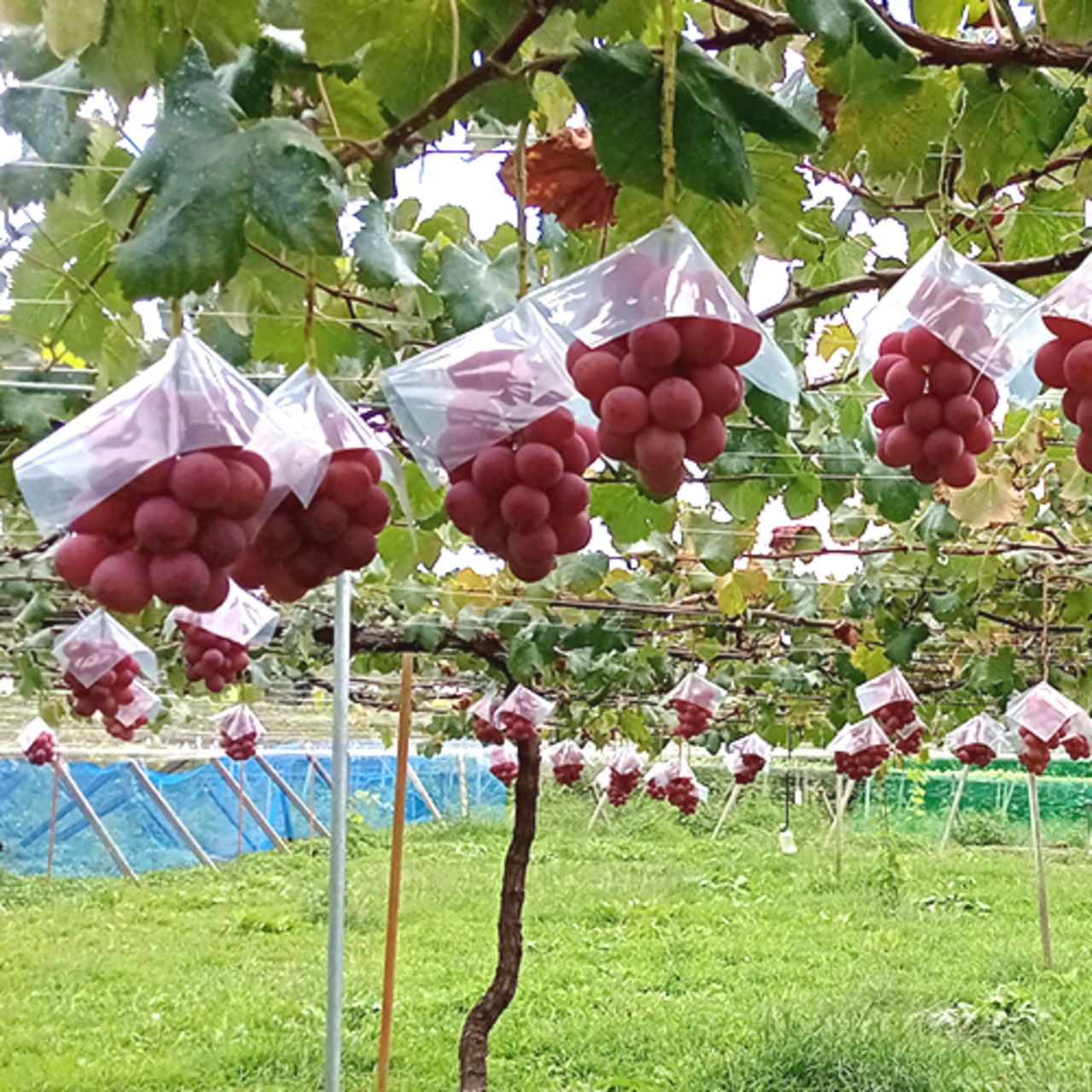 果粒は、巨峰より大きく15~20g、糖度は18~20度、肉質は硬めでしまっています。